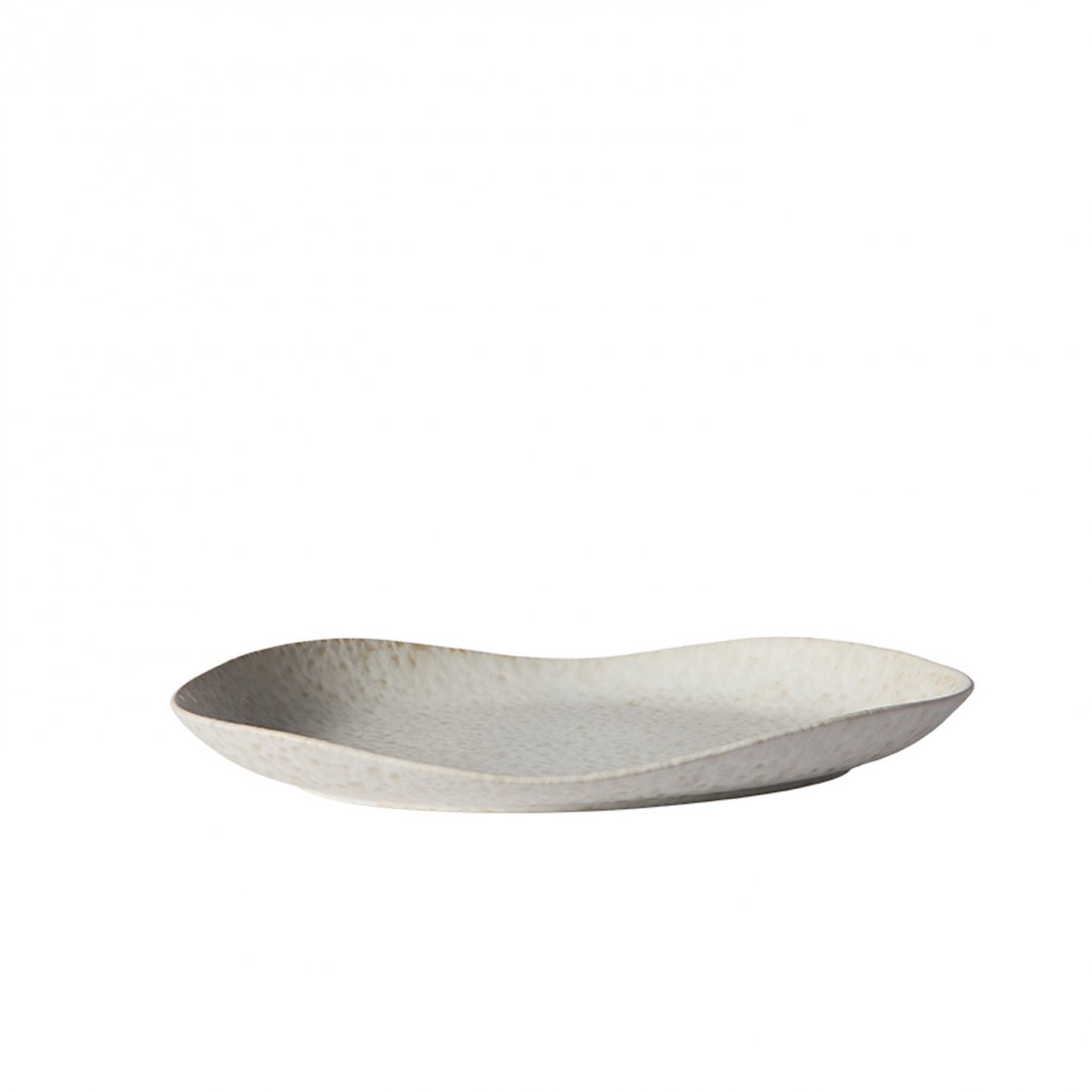 Tallerkenen er glaseret med en cremet hvid reaktiv glasur, der giver hvert stykke sin egen unikke karakter og marmorering