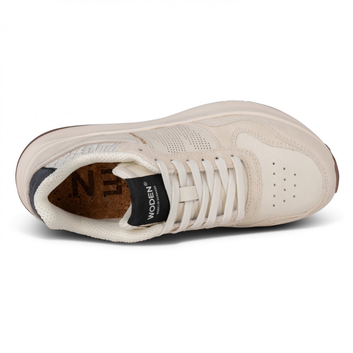 Skoene er med en blød PU-støbt indersål med korkbetræk samt Woden air flow system™