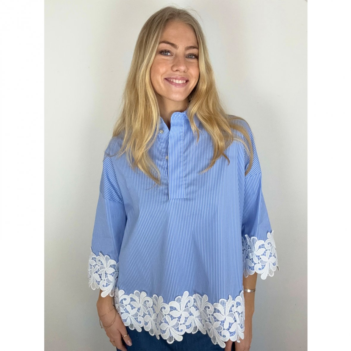 Klara stripe embrodery bluse fra Continue
